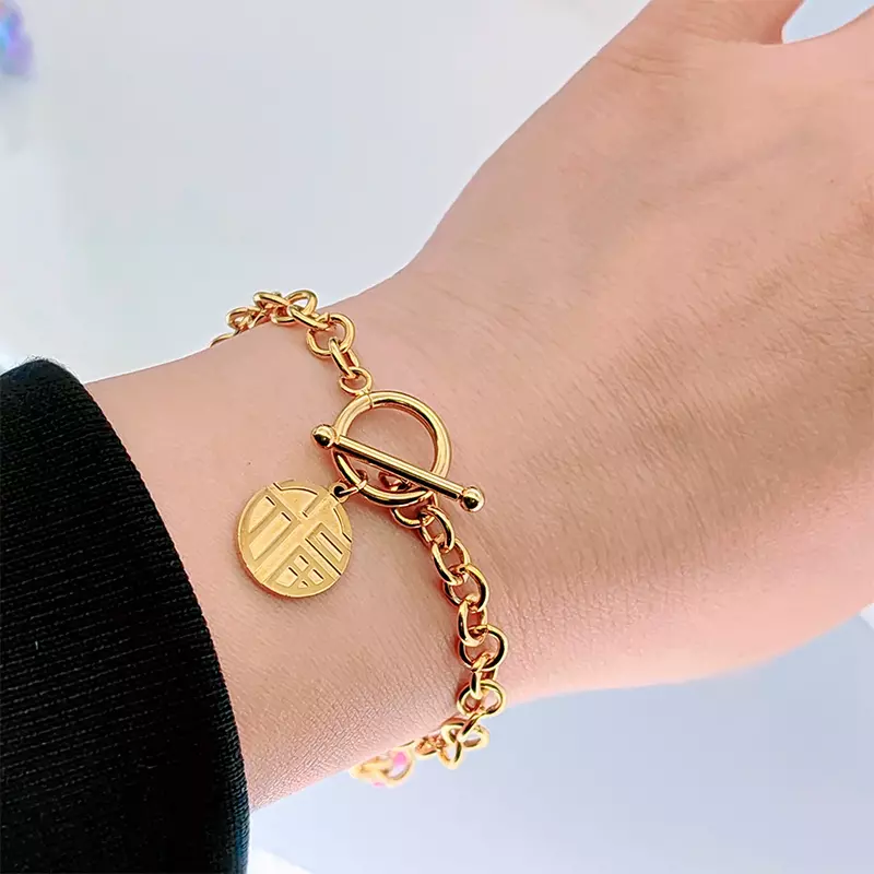 Vòng đeo tay có ký tự "Fu" bằng thép titan, vòng đeo tay dày