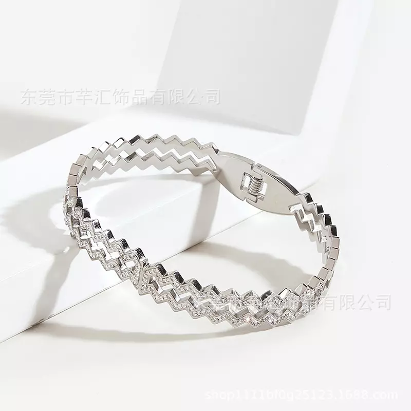 Thép-Sóng Xám-Mẫu vòng tay kim cương đầy đủ