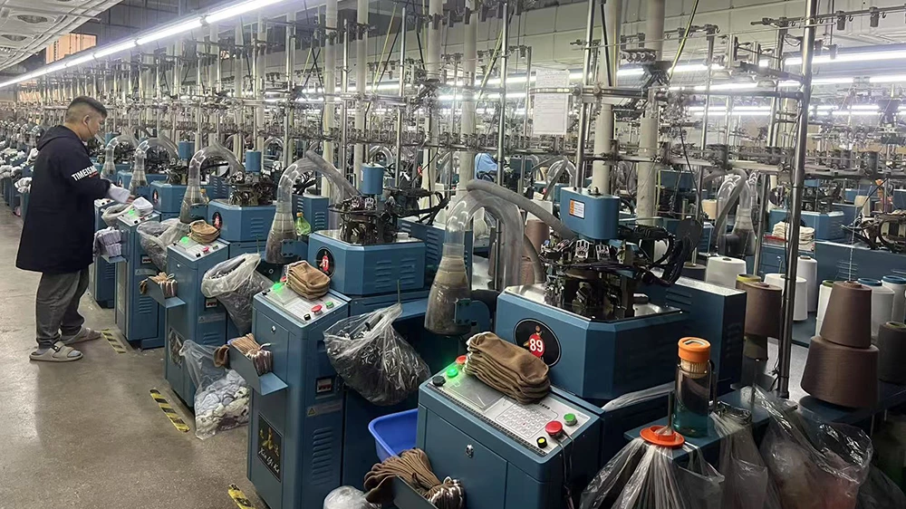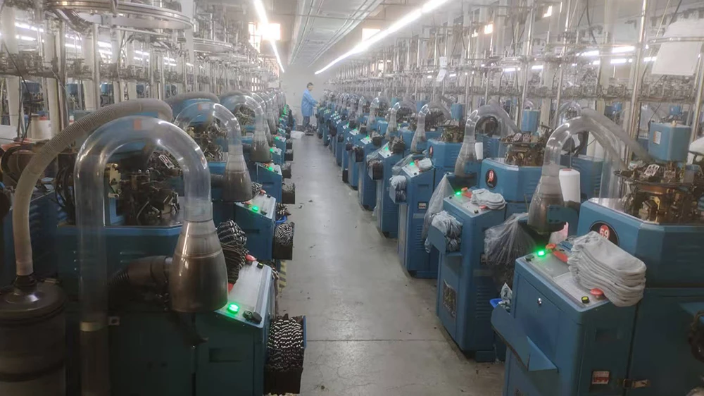 Nhà máy sản xuất đan Zhuji Yuexin nằm ở thành phố Zhuji, tỉnh Chiết Giang,nổi tiếng là "thủ đô của Trung Quốc". Là một doanhnghiệp đan hiện đại, chúng tôi tích hợpnghiên cứu và phát triển, sản xuất và bán hàng, cung cấp một chuỗi sản xuất hoàn chỉnh, bao gồm đan, may, định hình và đóng gói.