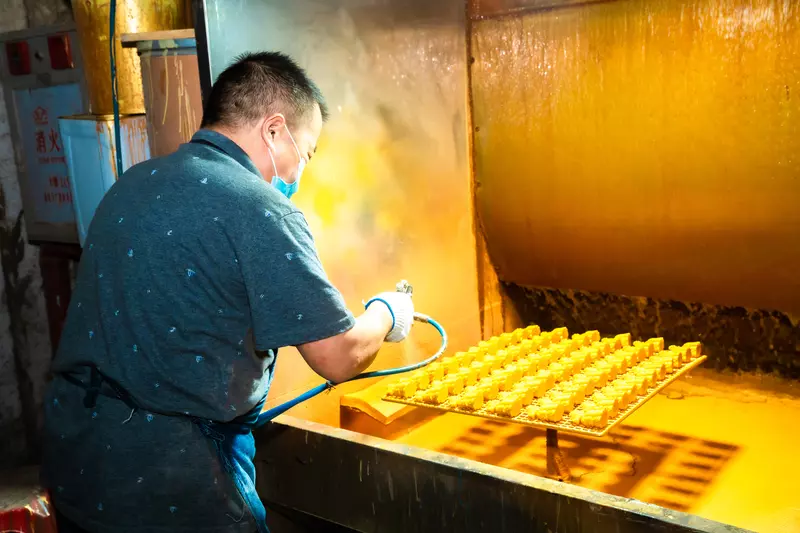 Đổ: Nhựa lỏng được đổ cẩn thận vào các khuôn được chế tạo đặc biệt, bước đầu tiên để ghi lại các chi tiết phức tạp.